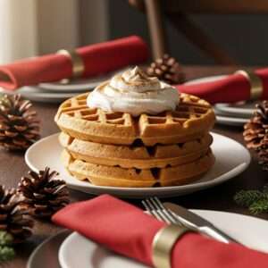 Soft, fluffy waffles with warm pumpkin spice flavors that scream Christmas.