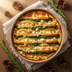 A flavorful, Mediterranean-inspired breakfast casserole with a cheesy, veggie twist.