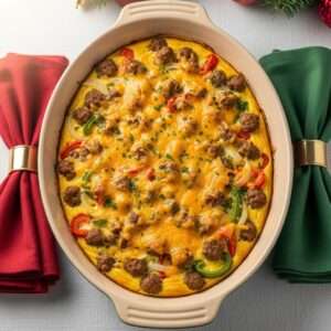 A warm, cheesy egg casserole that can be prepared ahead of time and baked in the morning. Perfect for feeding a crowd with minimal effort.