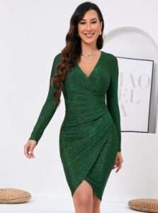 This sparkly glitter ruched bodycon dress is a stunning choice for a Christmas wedding, offering the perfect blend of glamour, comfort, and sophistication.