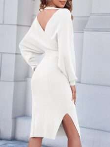 This elegant batwing sleeve V-neck bodycon dress is a stunning choice for a Christmas wedding, combining comfort with effortless sophistication.