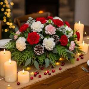 These natural scents enhance the holiday atmosphere and complement floral arrangements beautifully.