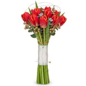 For a modern Christmas wedding, red tulips offer a sleek and simple floral option.
