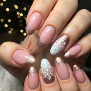 If you’re over the classic red-and-green manicure and want something more elegant, these 12 pink Christmas nails with rose gold accents are the perfect inspiration.