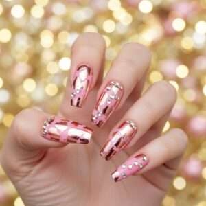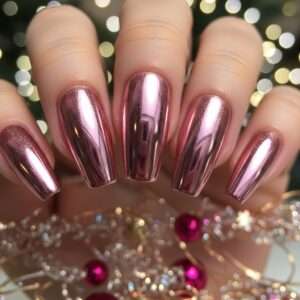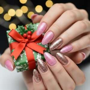 If you want nails that feel luxurious, festive, and feminine, pink and rose gold Christmas nails are the perfect match.