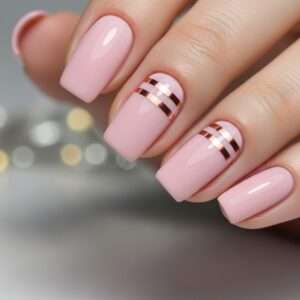 Paint your nails baby pink and add thin rose gold stripes or crisscross lines.