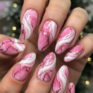 Create a marble look with swirls of white, pink, and hints of rose gold.