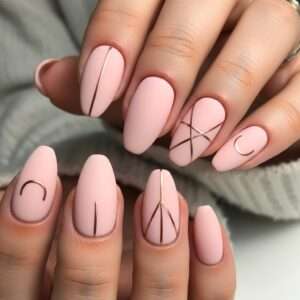 For a soft and cozy Christmas look, try matte blush pink nails with thin rose gold lines or small geometric details.