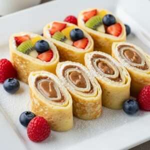 Fill crepes with fruits, cream, or nut butter and roll them neatly.
