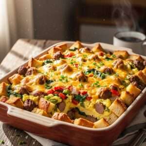 Bake until golden and set. You can prepare it the night before and bake it in the morning for a stress-free start.