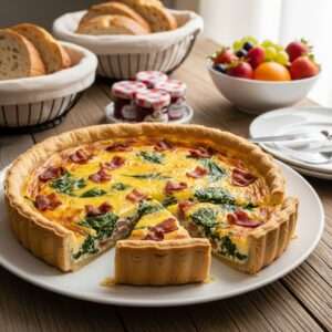 Bake one large quiche or several smaller ones with different fillings like spinach and feta or bacon and cheese. Slice into wedges for easy serving.