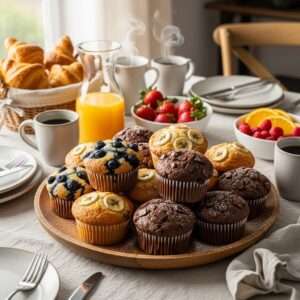 Bake or buy a variety of muffins—blueberry, banana, chocolate chip, and bran.