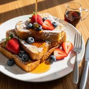 Fry on a buttered skillet until golden. Serve with fresh berries, maple syrup, or a dusting of powdered sugar. For a richer flavor, use brioche or challah bread.