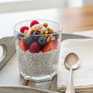 Chia seeds are rich in omega-3 fatty acids, fiber, and protein, making this a healthy breakfast choice.