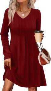SAMPEEL Womens V Neck Long Sleeve Fall Dress