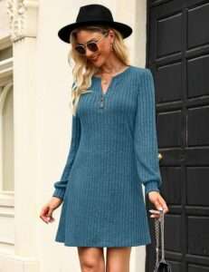 This puff long sleeve mini sweater dress is an excellent choice for a Christmas dinner outfit because its soft, cozy fabric keeps you warm while providing all-day comfort.