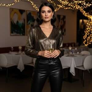 Pair with a shimmery or printed blouse for a balanced holiday look that’s chic and modern.