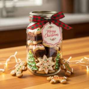 Gift your coworkers a jar filled with Christmas cookies or rich brownies.