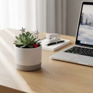 Small desk plants like succulents, cacti, or mini potted greens bring life to any workspace.