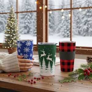 A high-quality travel mug with a Christmas pattern or winter theme is perfect for coworkers who love hot drinks on the go.