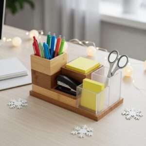 It can hold their pens, sticky notes, paper clips, and other essentials—great for productivity and aesthetics.