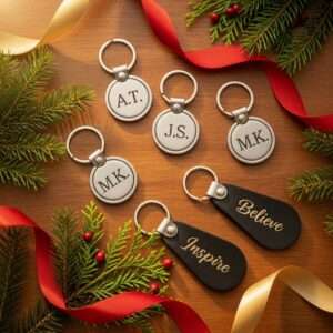 Engraved keychains with initials, motivational words, or fun office-themed charms make great Christmas gifts for coworkers.