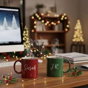 A personalized coffee mug with their name, initials, or a funny office quote makes a thoughtful and practical Christmas gift.