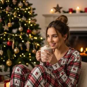 Opt for soft fabrics like cotton, flannel, or silk, and consider festive patterns like plaid or holiday prints.