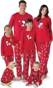 The cheerful Snoopy and Woodstock designs bring fun and festive charm to family photos, cookie baking, or lounging together on Christmas morning.