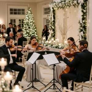 Consider live performers like a string quartet playing holiday melodies or a pianist for a cozy, festive ambiance.