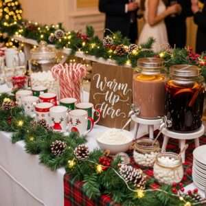 Decorate the station with garlands, fairy lights, candy canes, and festive mugs. This interactive feature keeps guests cozy and engaged.