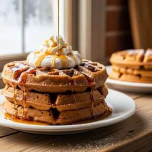 Spiced waffles reminiscent of your favorite holiday treat, perfect with maple syrup.