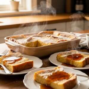 Soft, custardy bread baked with cinnamon and vanilla, a great dish for a family breakfast.