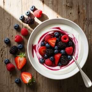 Sweet-tart berry compote served over creamy yogurt for a light, cozy breakfast.