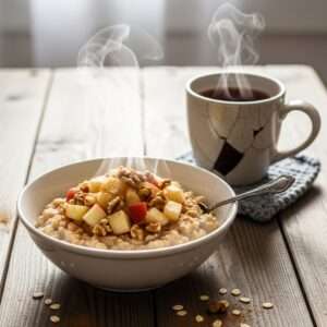 Creamy oatmeal cooked with tender apples, cinnamon, and a hint of brown sugar.