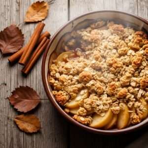 Baked apples with oats, cinnamon, and brown sugar, perfect for a cozy start.