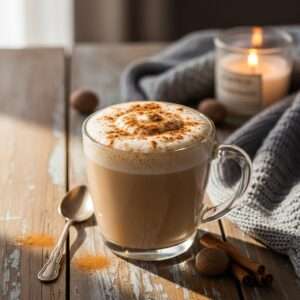 A warm-spiced smoothie with coffee, perfect for a winter morning pick-me-up.