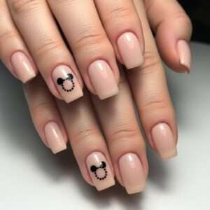 Black dots in a Mickey head shape on a nude or pastel base. Quick, simple, and perfect for subtle Disney fans.