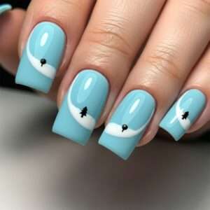 Light blue nail with a small white semicircle representing snow, a tiny dot for a character or tree inside. Easy yet festive.