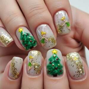 3. Christmas Tree and Tinker Bell Nails