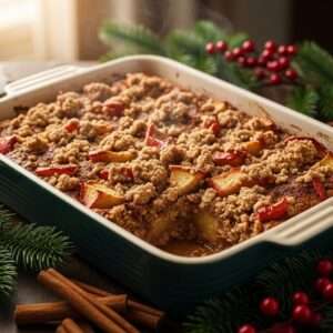 Warm, spiced oats baked with tender apples—perfect comfort food for Christmas morning.