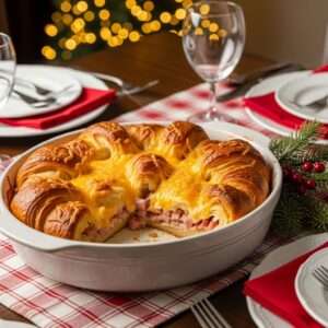 Flaky croissants baked with ham, cheese, and a rich egg custard—easy and luxurious.