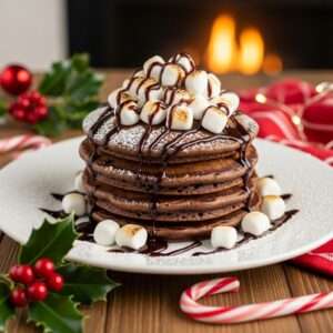 Chocolatey, fluffy pancakes topped with marshmallows—perfect for a kid-friendly Christmas brunch.