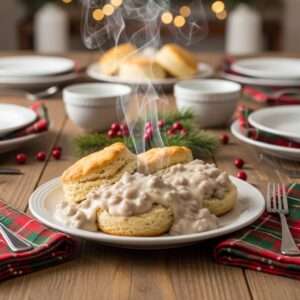 A comforting Southern favorite with savory sausage and creamy gravy poured over warm biscuits.