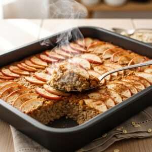 Warm apples, cinnamon, and oats come together to create a thick, baked oatmeal that feels like a hug in a bowl.