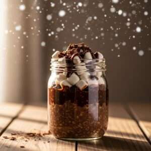 Rolled oats soak overnight in a blend of milk, cocoa powder, and a touch of maple syrup, creating a creamy, chocolatey base.