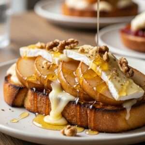 Sweet roasted pears paired with creamy, melty brie create a luxurious winter toast.