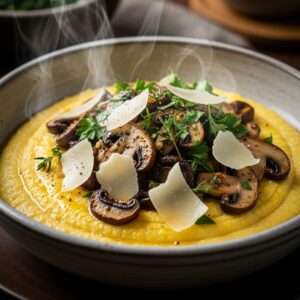 Soft, buttery polenta paired with garlicky sautéed mushrooms is pure winter comfort.