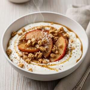 The contrast of cold yogurt and warm apples makes this bowl extra cozy.