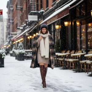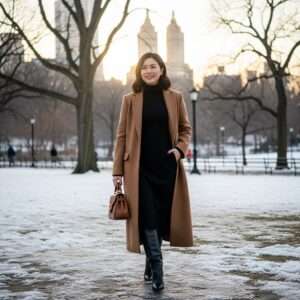 Add mid-calf boots and a beret to channel Paris-meets-NYC aesthetics. Ideal for photographing in iconic spots like Central Park in winter.